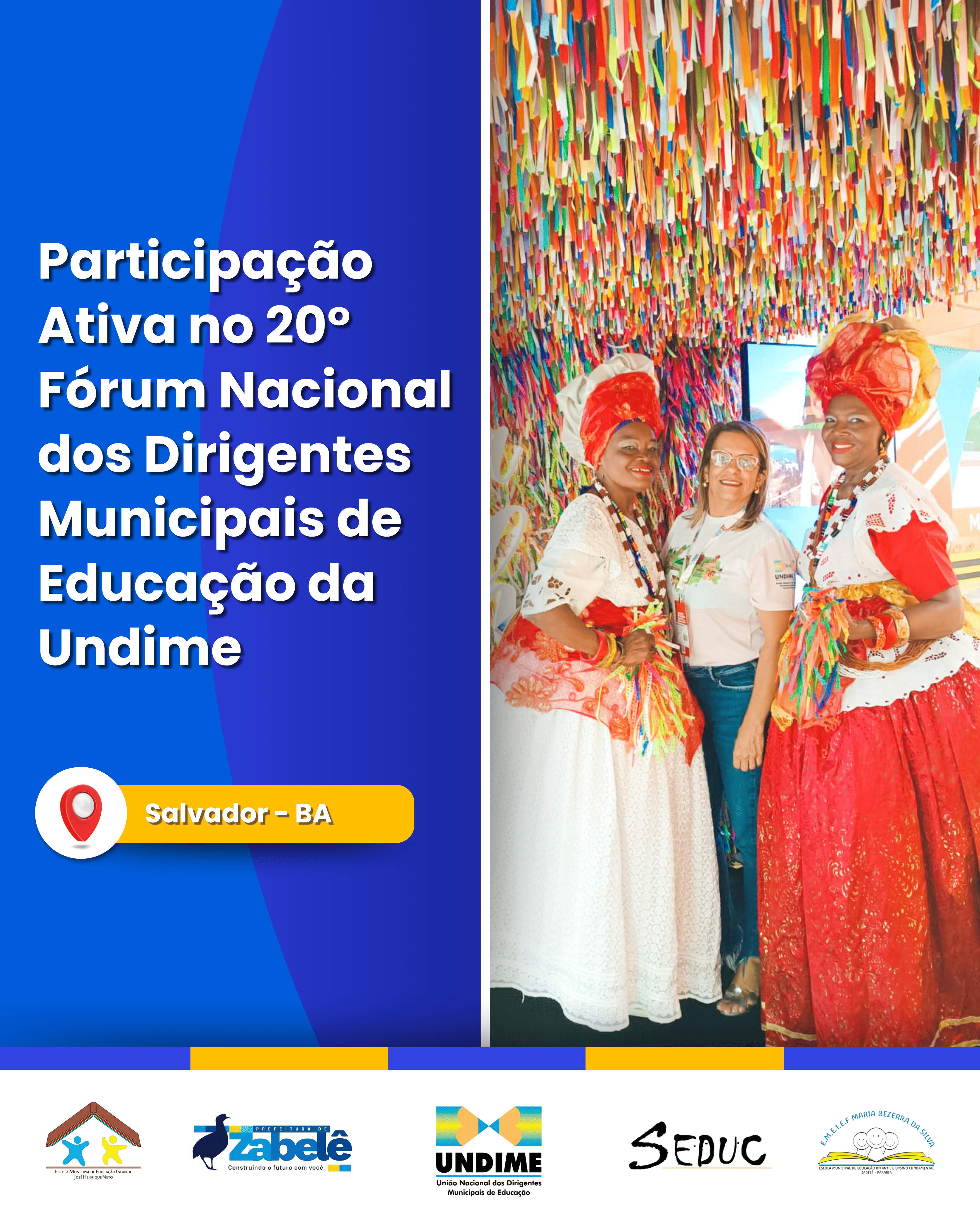 Durante os dias 27 a 30 de julho, a Professora Marleide Araújo está participando do 20º Fórum Nacional dos Dirigentes Municipais de Educação da Undime, realizado em Salvador - BA, que reúne mais de 3 mil participantes de todo o Brasil.