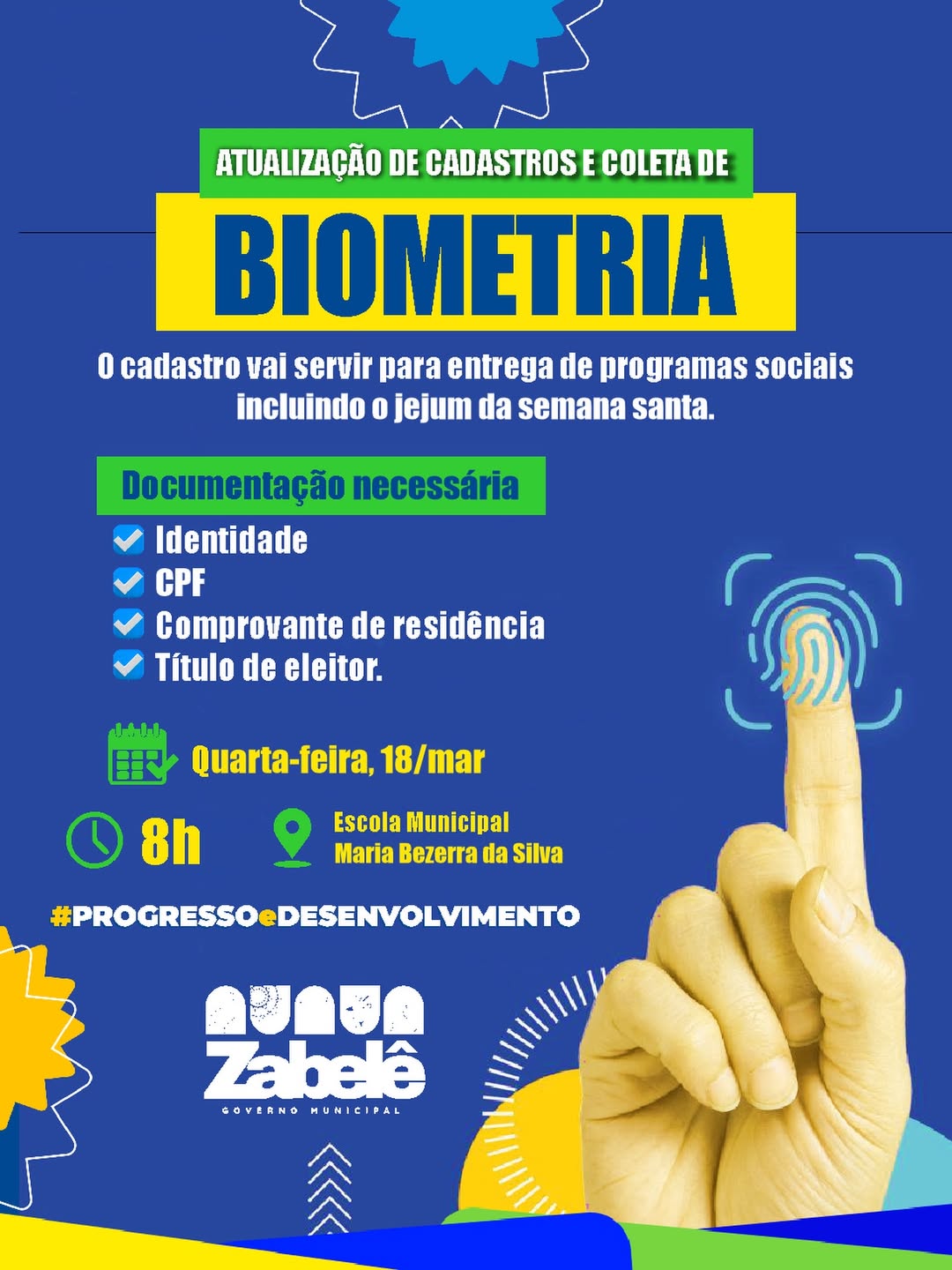 Chegou o momento de realizar a atualização de cadastros municipais e a coleta de biometria.