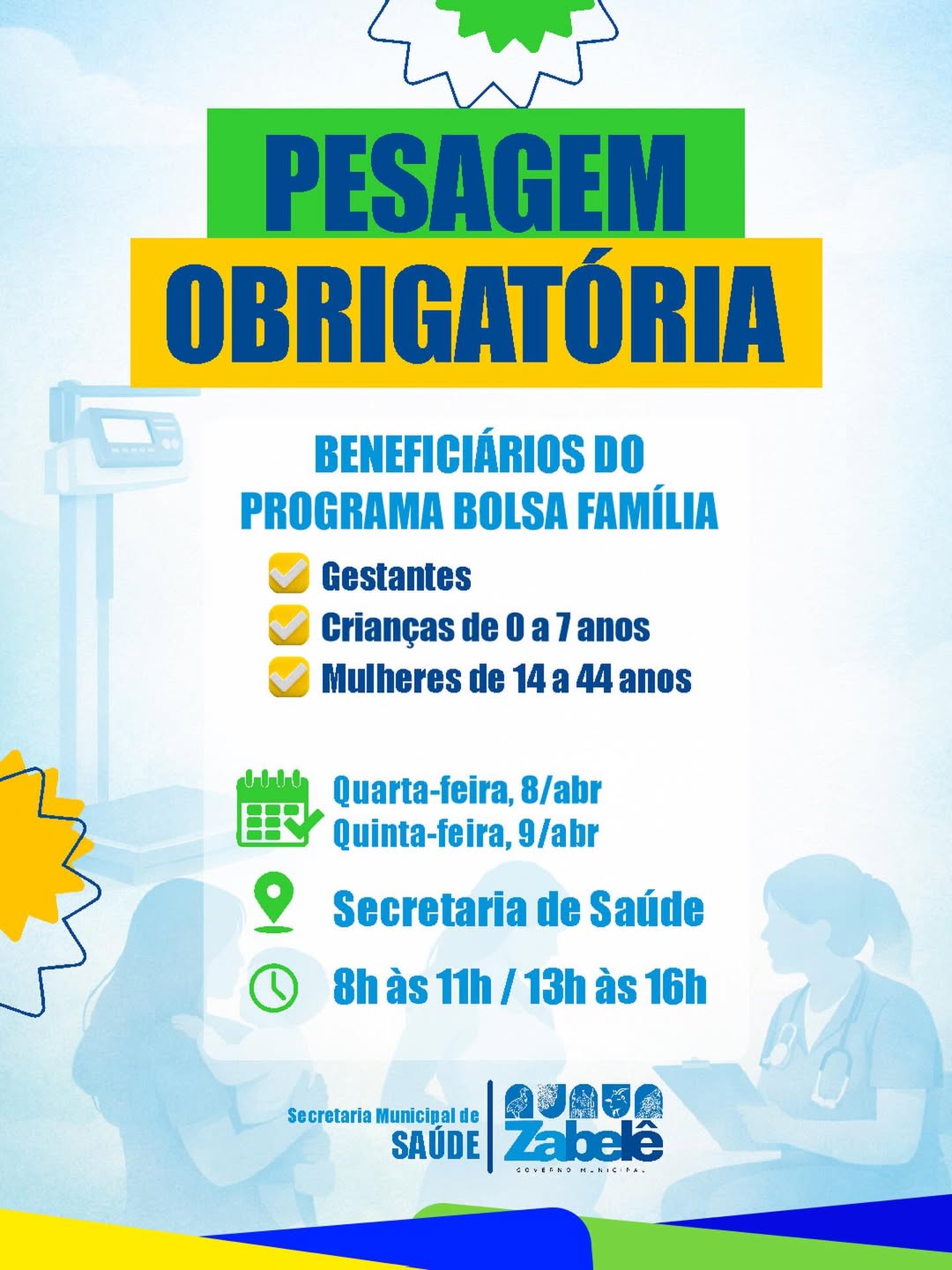 Se você é gestante, tem crianças de 0 a 7 anos ou é mulher de 14 a 44 anos, não deixe de comparecer!